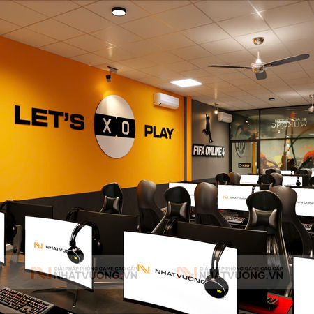 Phong cách Đấu Trường X-Play của PH GAMING được xây dựng theo tinh thần thi đấu thực thụ – gọn gàng, mạnh mẽ và tập trung vào trải nghiệm người chơi.Không gian sử dụng tông xám – đen làm nền, mang lại cảm giác chắc chắn và hiện đại, kết hợp các mảng vàng cam nổi bật tạo điểm nhấn thị giác, tăng năng lượng và sự hứng khởi khi bước vào phòng máy.