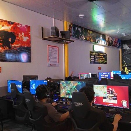 Khu tiêu chuẩn (Standard Zone):Các dãy máy được sắp xếp gọn gàng, khoảng cách hợp lý, đảm bảo sự riêng tư khi chơi nhưng vẫn giữ được không khí thi đấu chung. Ánh sáng trắng đồng đều giúp người chơi dễ quan sát màn hình, hạn chế mệt mỏi khi chơi lâu.